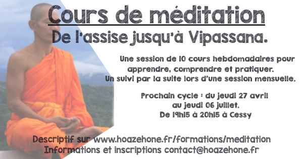 Début du prochain cycle d'apprentissage de la méditation VIPASSANA, le jeudi 27 avril à 19h15.